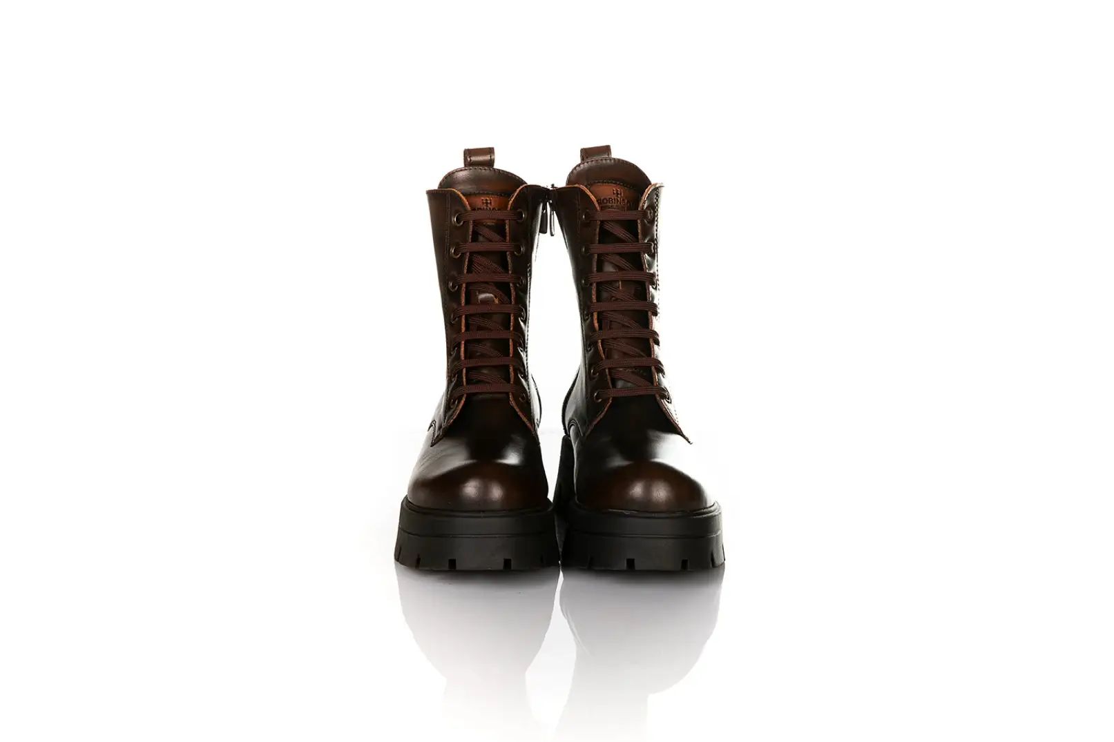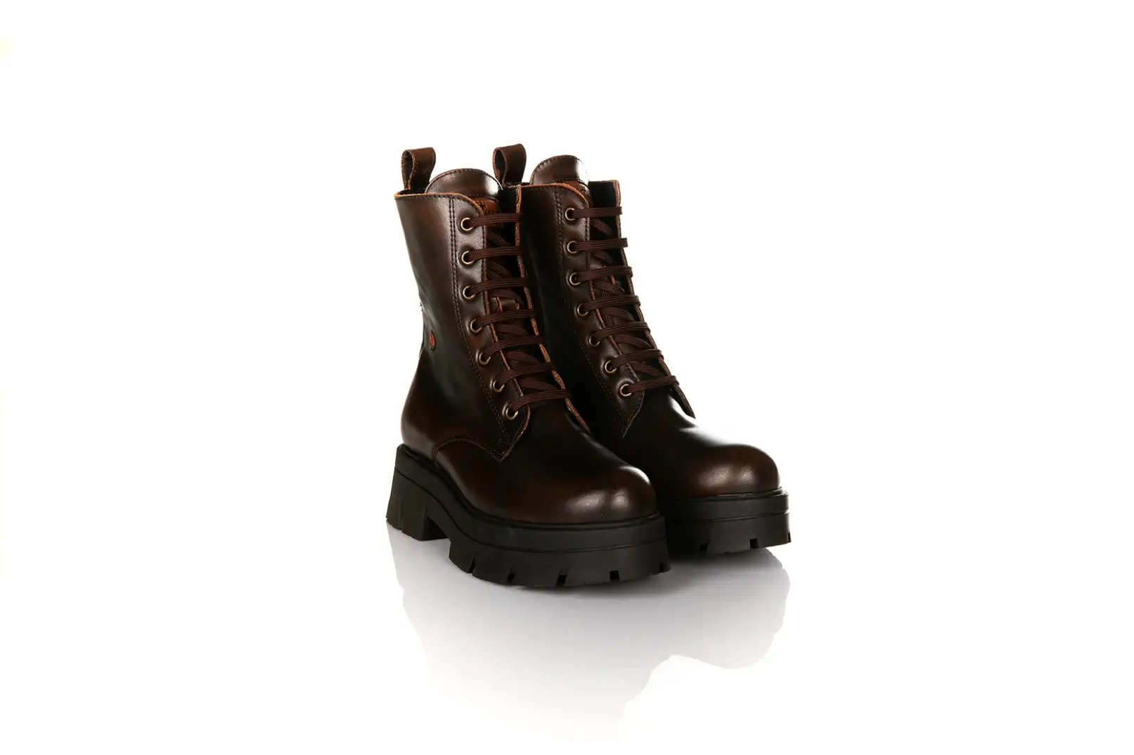 Καφέ γυναικείο μποτάκι από γνήσιο δέρμα.