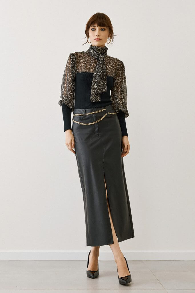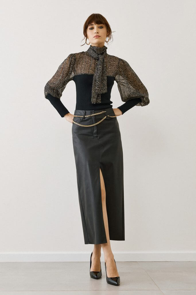Φόρεσέ τη με δερμάτινη φούστα ή ψηλόμεσο παντελόνι και ολοκλήρωσε το outfit με γόβες ή μποτάκια για ένα chic, εντυπωσιακό look.