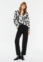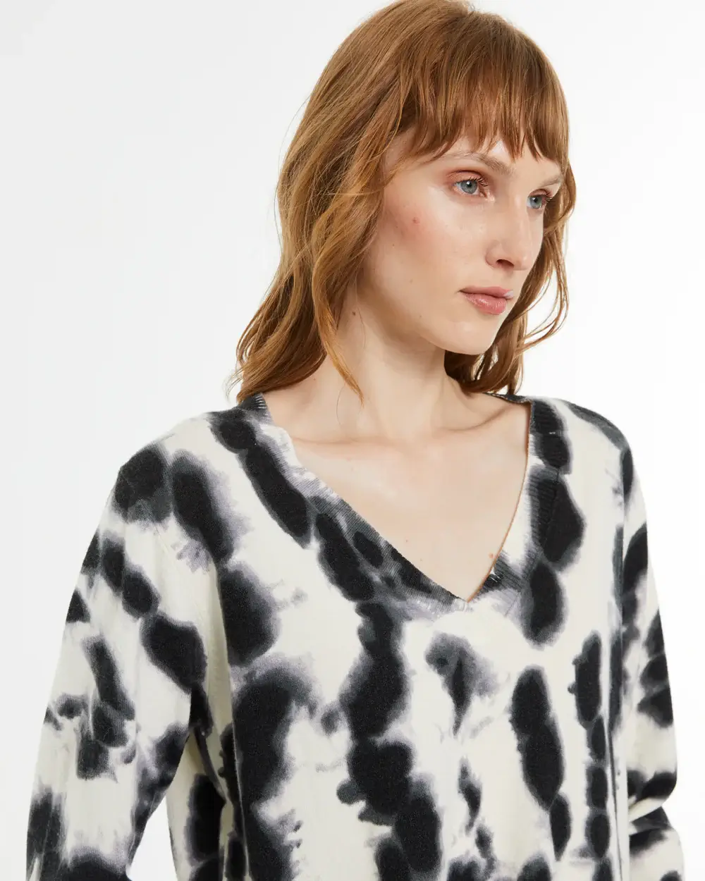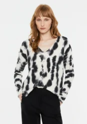 Άνετη και μοντέρνα γυναικεία μπλούζα με tie-dye σχέδιο, σε αποχρώσεις του μαύρου και του λευκού.