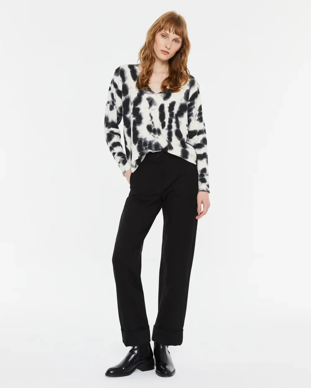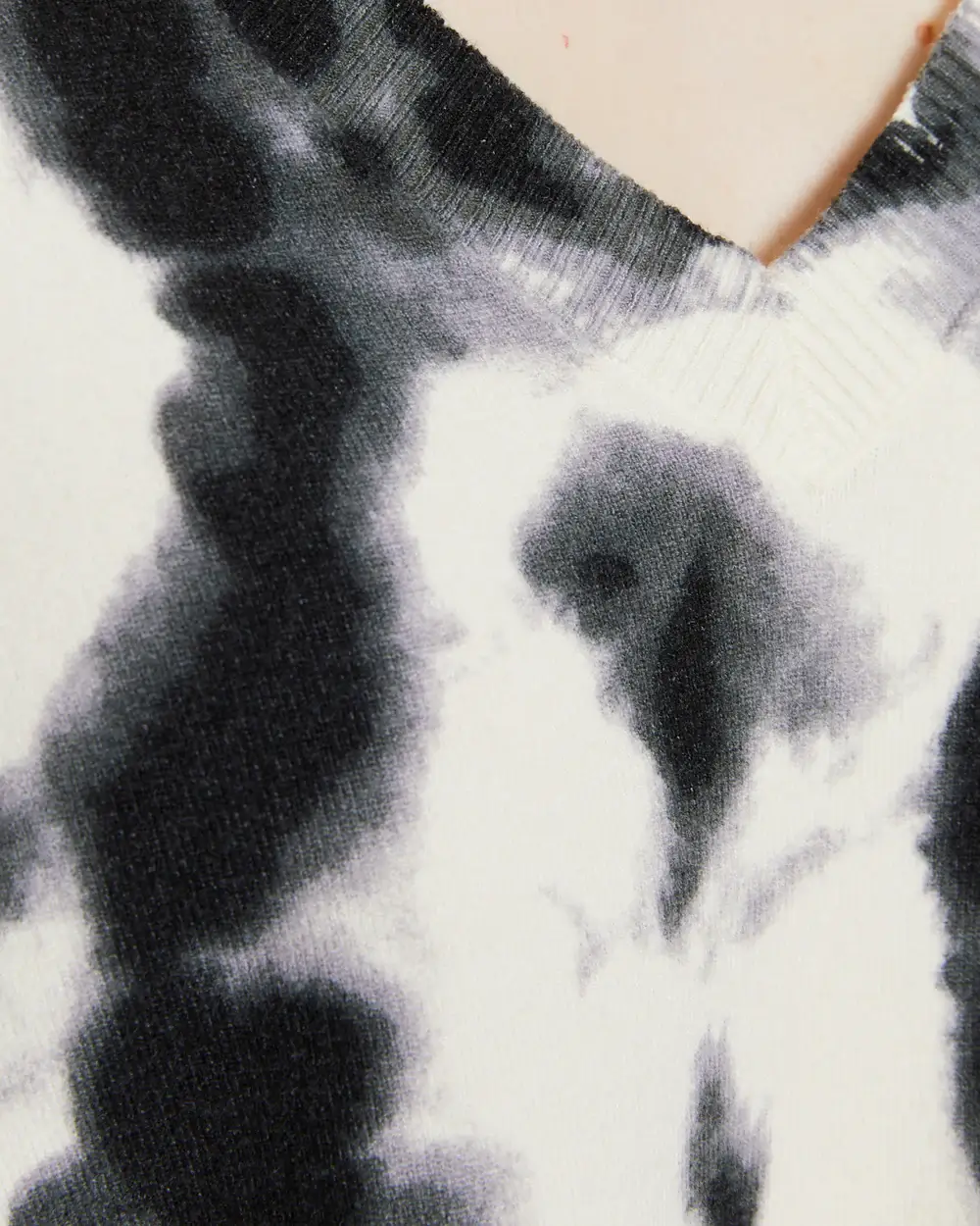 Μοντέρνα γυναικεία μπλούζα tie-dye σε μαύρο και λευκό. Άνετη εφαρμογή, V λαιμόκοψη και μαλακό ύφασμα για καθημερινό στυλ με άποψη.
