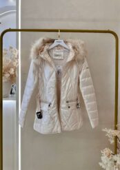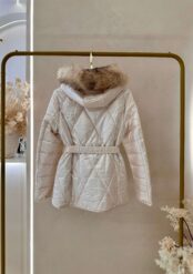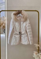 Το γυναικείο μπουφάν εκρού με γούνα και ζώνη είναι η ιδανική επιλογή για κομψές, ζεστές και θηλυκές χειμερινές εμφανίσεις. Συνδυάζει εντυπωσιακή εμφάνιση με άψογη εφαρμογή χάρη στη ραφιναρισμένη του γραμμή, την καπιτονέ υφή και τη ζώνη που τονίζει όμορφα τη μέση.