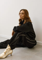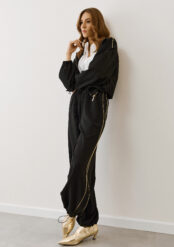 Μαύρο παντελόνι με λάστιχο και χρυσή ρίγα.