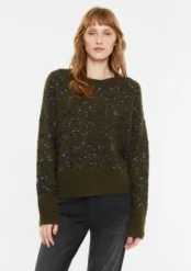 Πλεκτό πουλόβερ χακί με διακριτικές μαύρες παγιέτες και απαλή υφή.