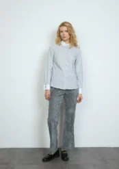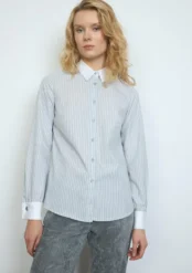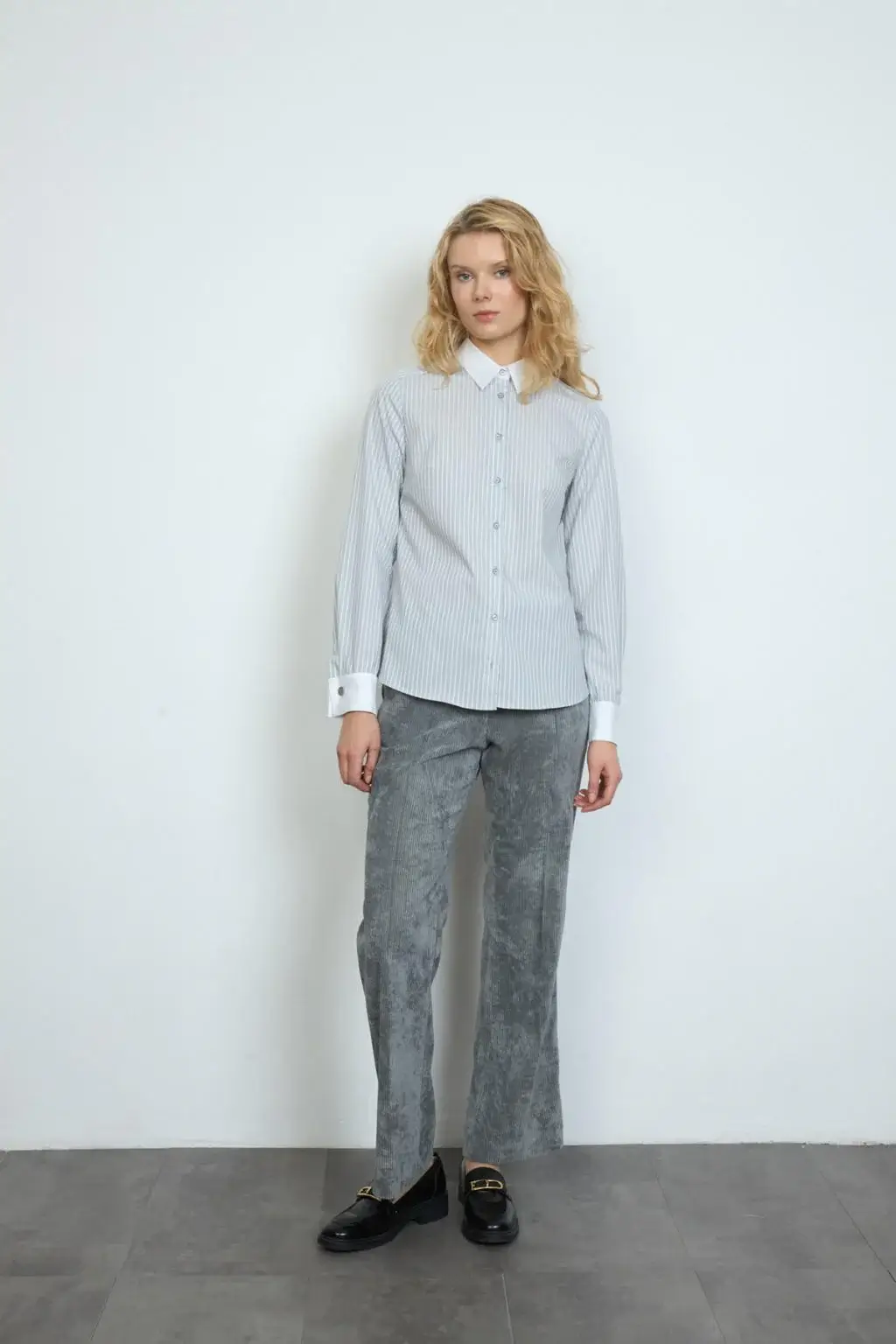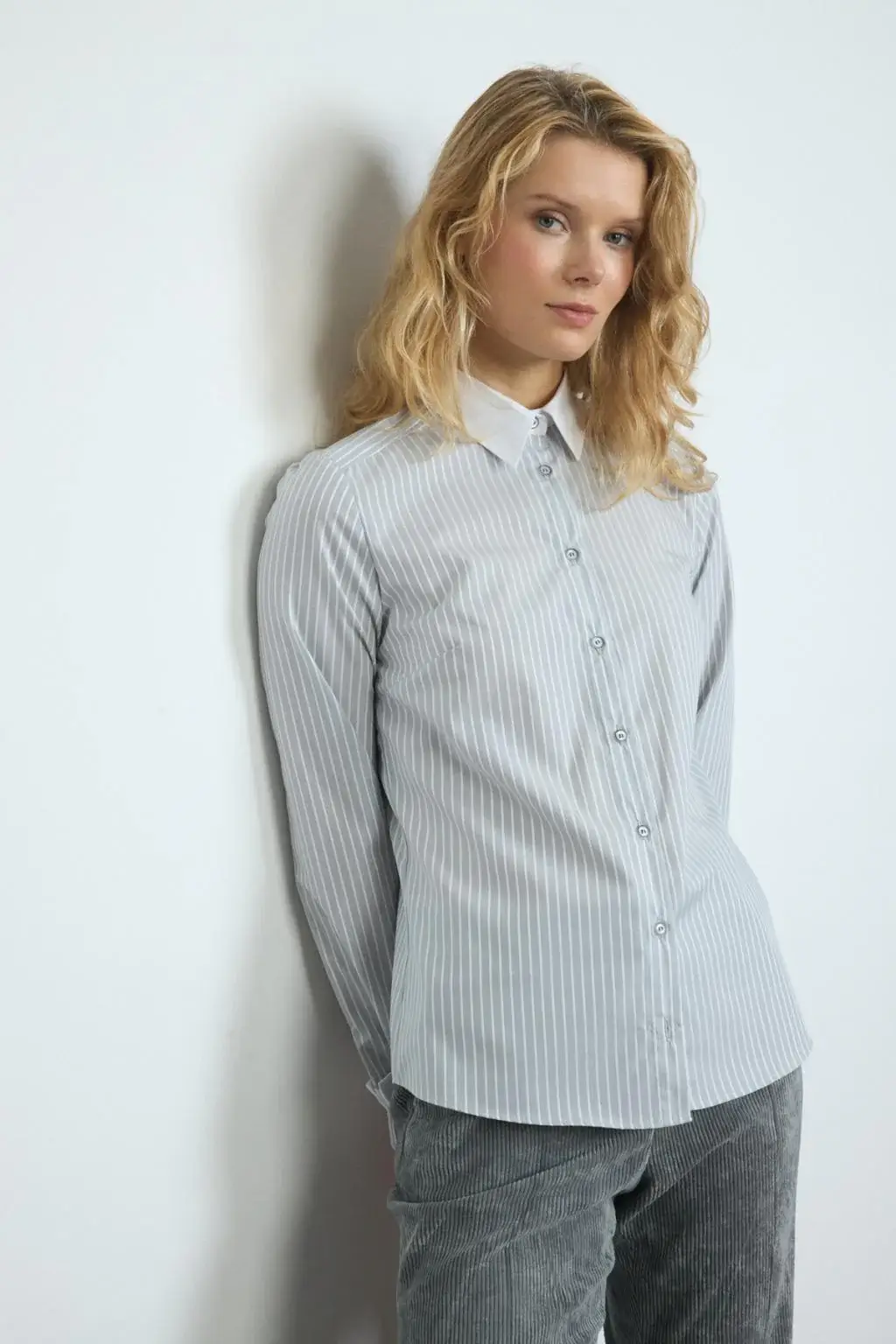 Πουκάμισο σε ίσια γραμμή, ριγέ με λευκό γιακά και μανσέτες.