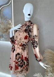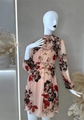 Το floral μίνι φόρεμα με φιόγκο είναι η ιδανική επιλογή για κομψές, θηλυκές και ανάλαφρες εμφανίσεις. Η αέρινη ποιότητα του υφάσματος χαρίζει άνεση και όμορφη κίνηση, ενώ το εντυπωσιακό εμπριμέ σε τόνους κόκκινου, μαύρου και σομόν δημιουργεί ένα ιδιαίτερα ρομαντικό αποτέλεσμα.